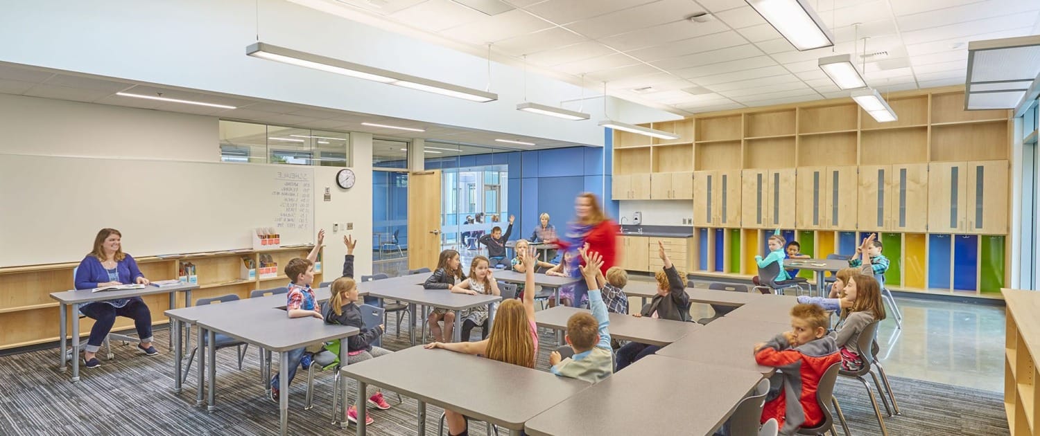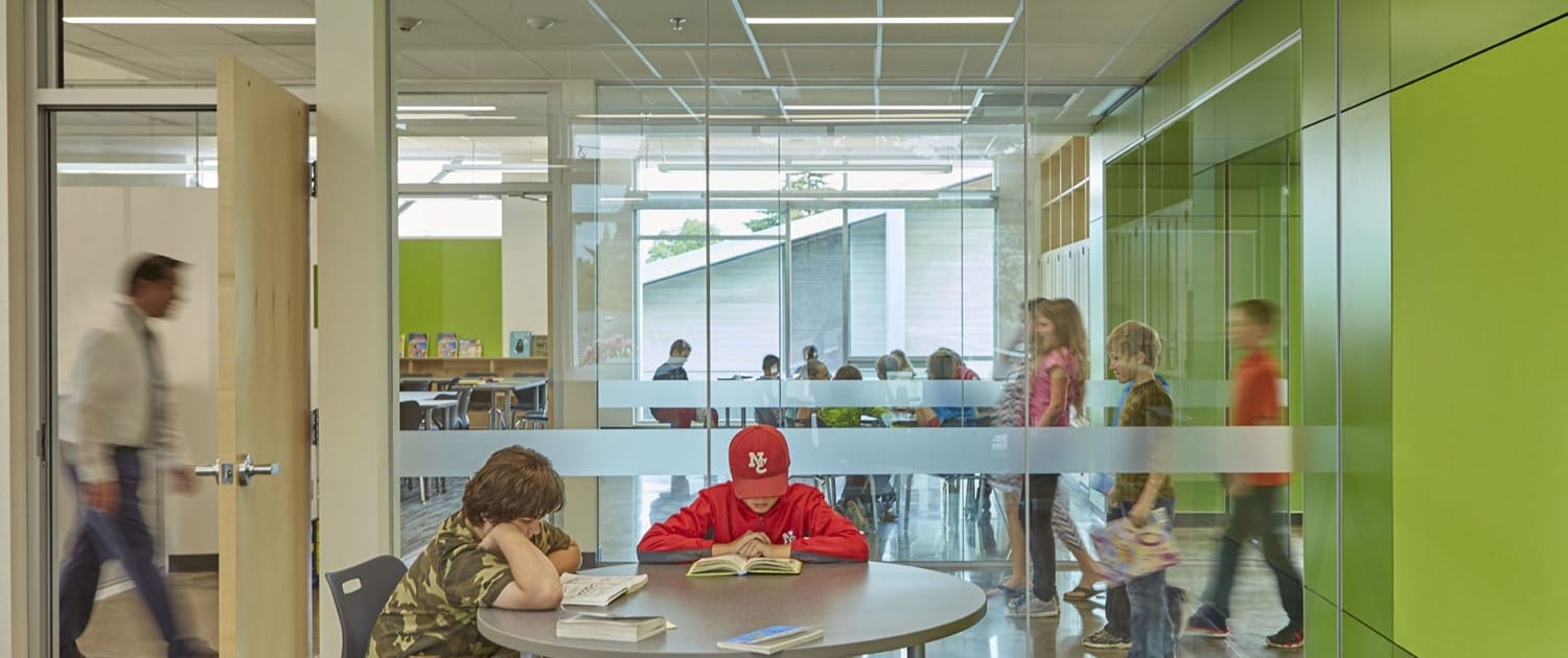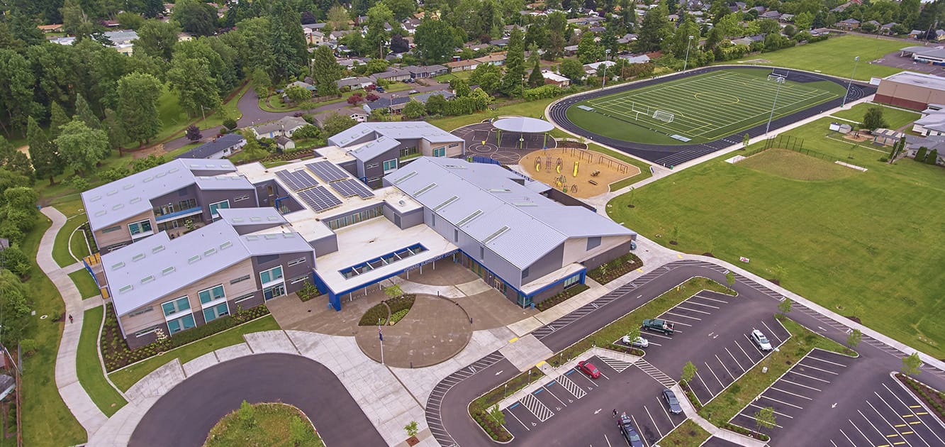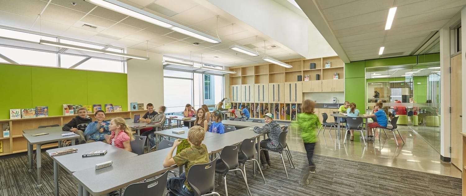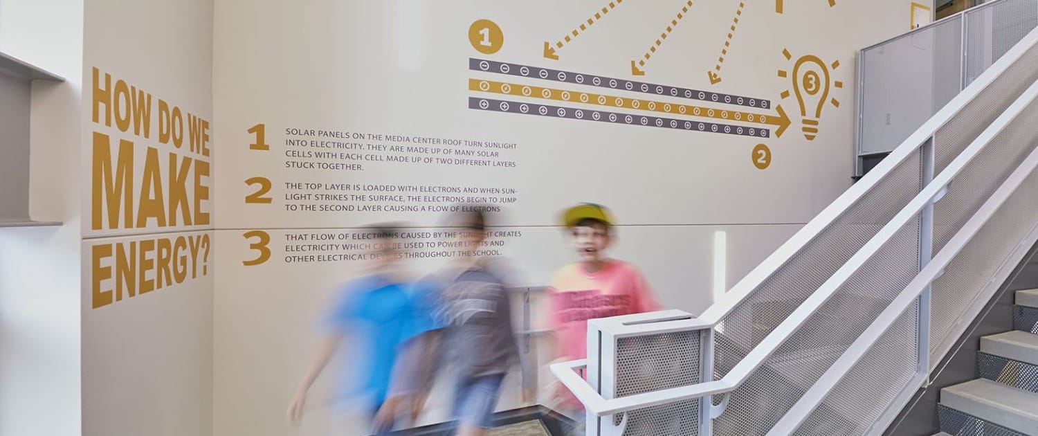 • Daylight Harvesting – The building is equipped with large windows and 53 skylights to maximize natural light. The classrooms have light shelves and sun shades strategically placed at the windows to harness optimum natural light.  The building lighting is controlled by daylight sensing equipment designed to adjust the lighting levels depending on natural light available.